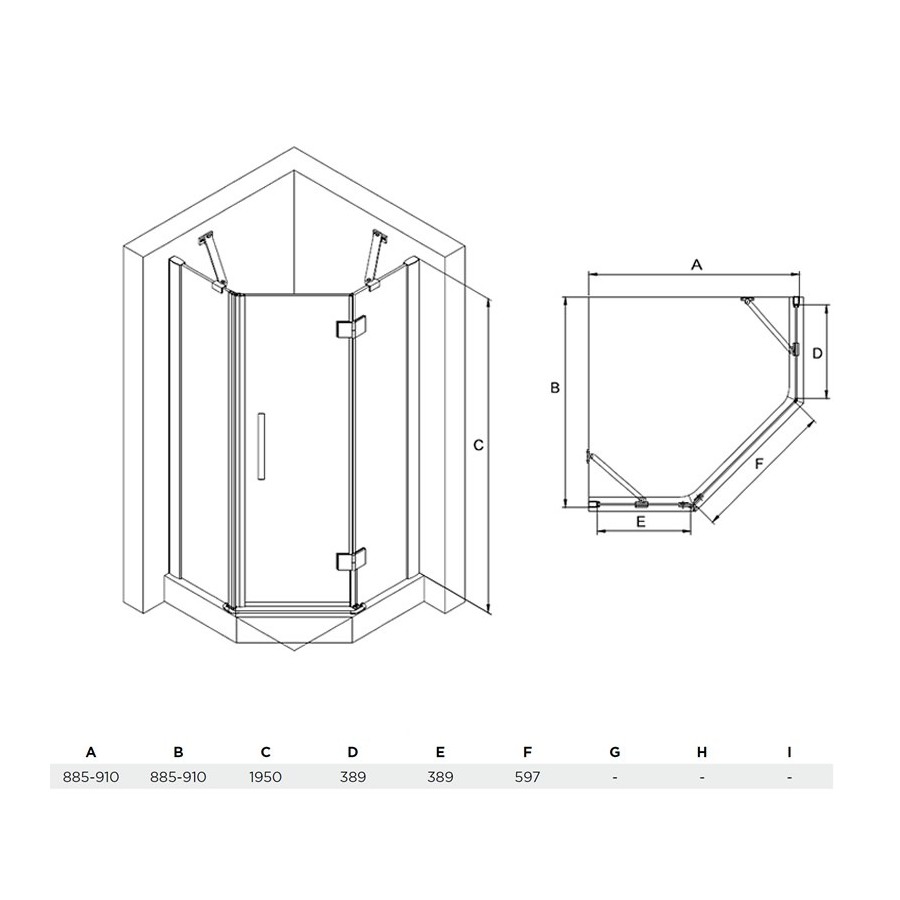 Opis produktu Besco Viva 195 kabina pięciokątna drzwi uchylne 90x90 cm prawa V5P-90-195-C