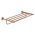 Półka ścienna z wieszakiem na ręczniki, długość 604 mm (rozstaw otworów 550 mm). Montowany do ściany na wkręty z kołkami (zawarte w zestawie), ukryte mocowanie. Materiał: metal. Kolor: brushed warm sunset.