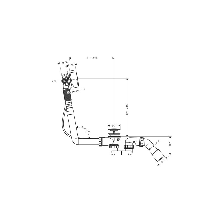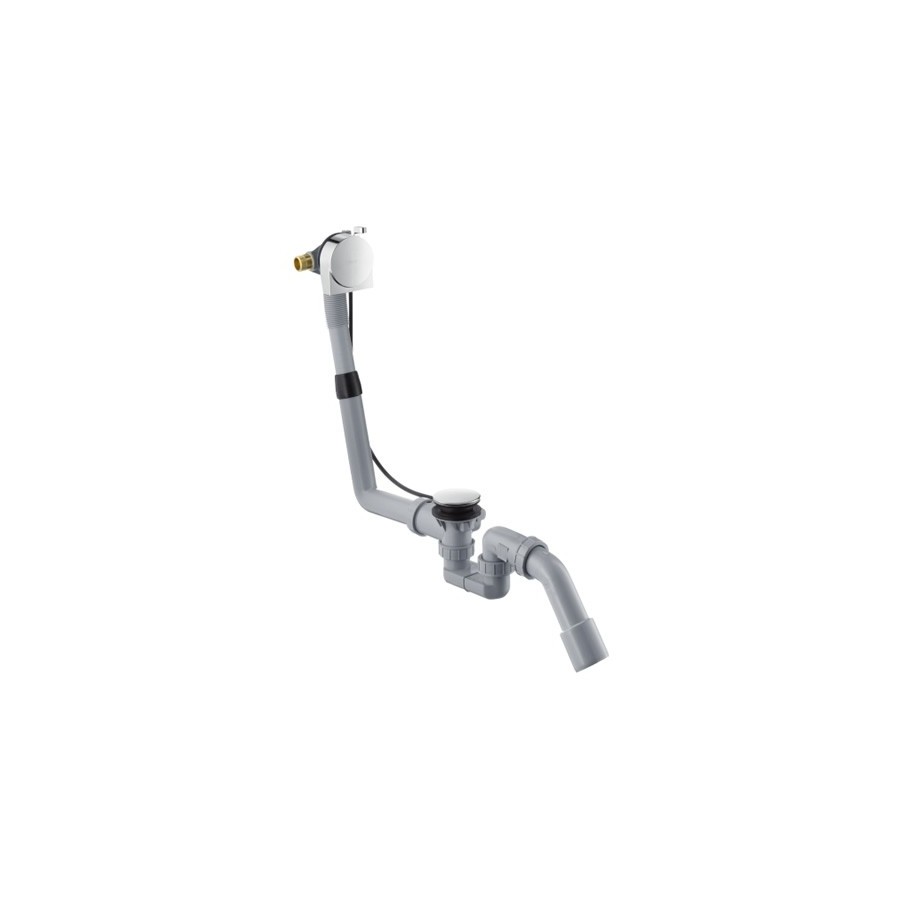 Exafill S wylewka wannowa z odpływem i przelewem, z syfonem (56373000), z przyłączeniem DN20, wypływem wodospadowym z regulacją 30o, przepływ 30 l/min. W komplecie cięgno Bowdena 52 cm. Zestaw kompletny do wanien normalnych ze ścianką o grubości < 10 mm.Hansgrohe Exafill S wylewka wannowa z odpływem i przelewem 58113000
