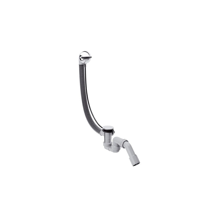 Flexaplus, elastyczny odpływ i przelew wannowy G 1½, kolano przyłączeniowe G 1½ x 4/5 cm oraz samoregulujące cięgło Bowdena. Zestaw wykonany z polipropylenu. Pasuje do wanien normalnych.