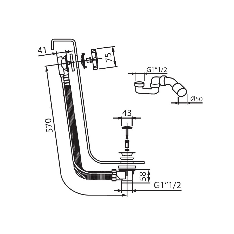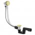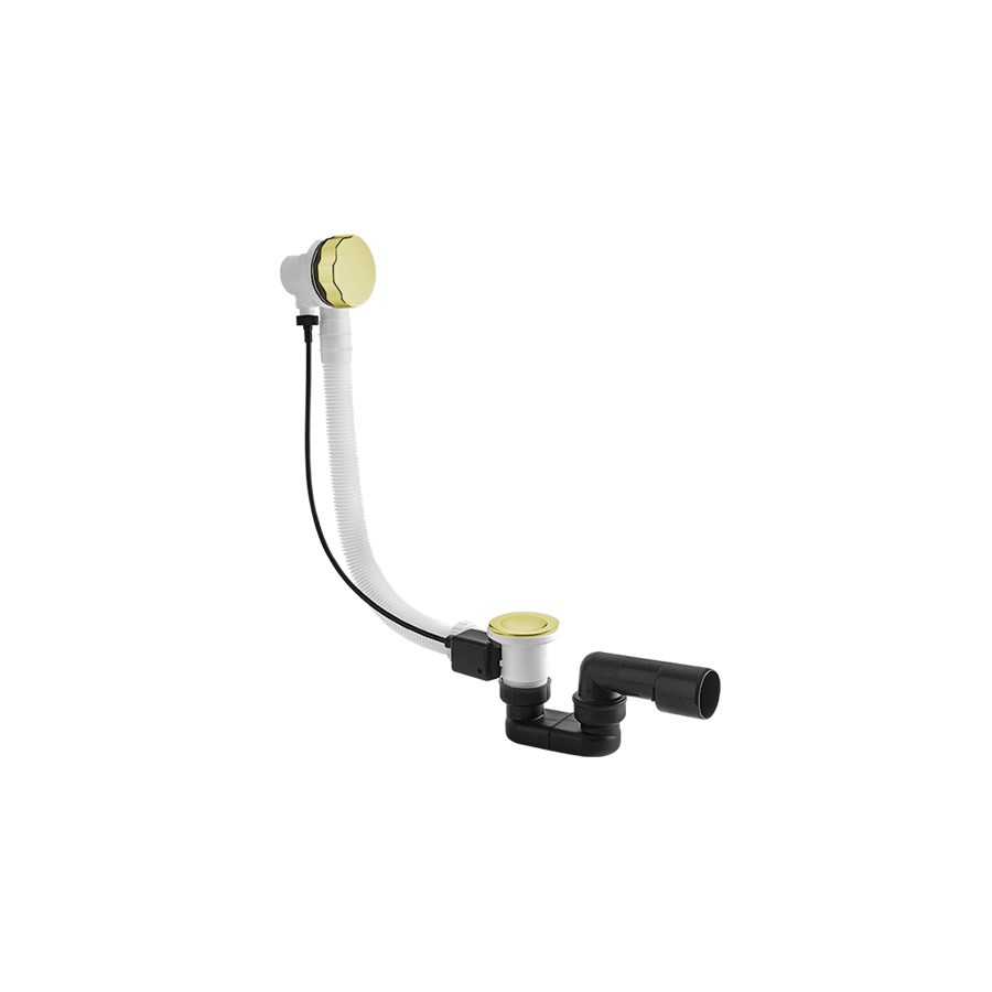 Przelew wannowy z syfonem do odpływu 40/50 mm. Rura przelewowa o długości 57 cm. Z korkiem odpływowym i korkiem przelewu wody wykonanym z mosiądzu w kolorze złotym. Powłoka PVD - gładka powierzchnia i podwyższona odporność na zarysowania.