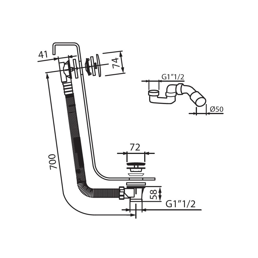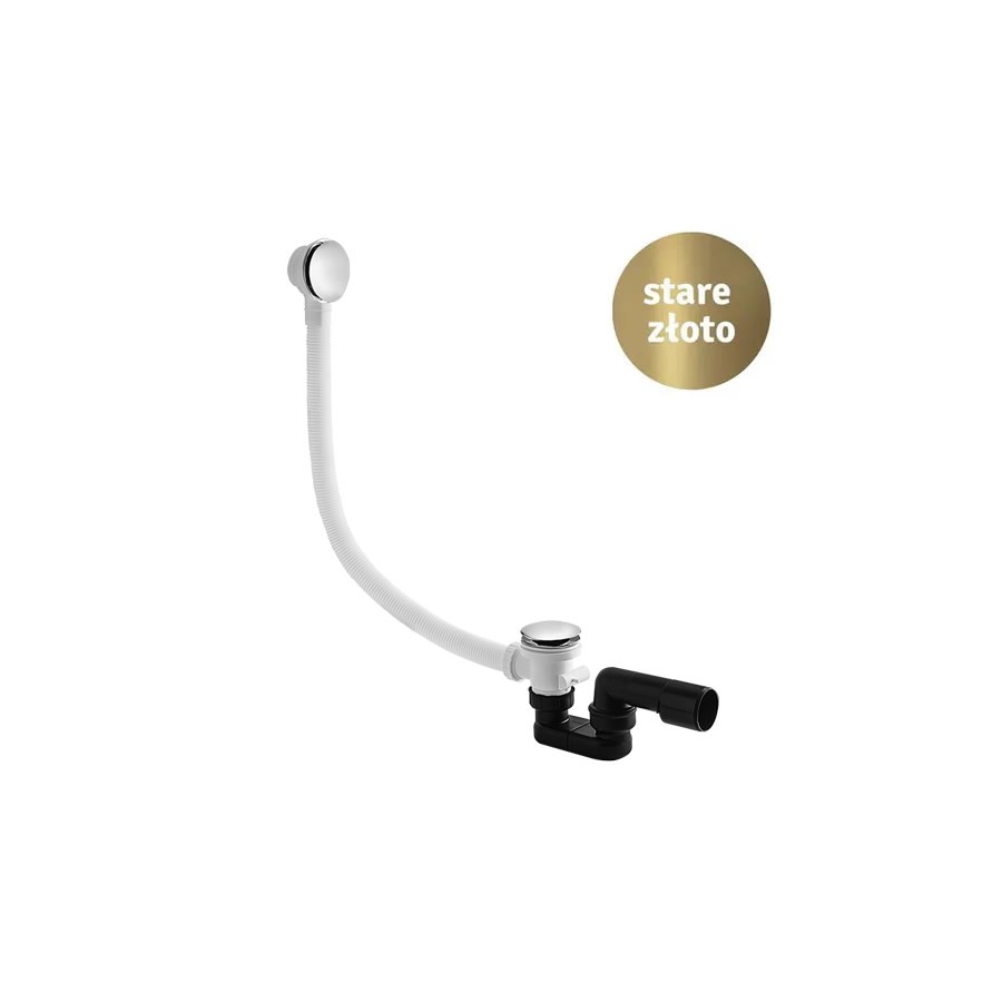 Przelew wannowy z korkiem klik klak z syfonem do odpływu 40/50 mm. Rura przelewowa o długości 70 cm. Z korkiem odpływowym i korkiem przelewu wody wykonanym z mosiądzu w kolorze stare złoto.