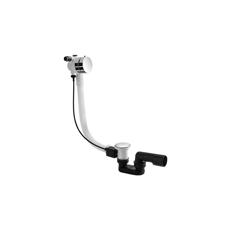 Przelew wannowy z funkcją napełniania z syfonem do odpływu 40/50 mm. Rura przelewowa o długości 57 cm. Z korkiem odpływowym i korkiem przelewu wody wykonanym z mosiądzu w kolorze chrom.