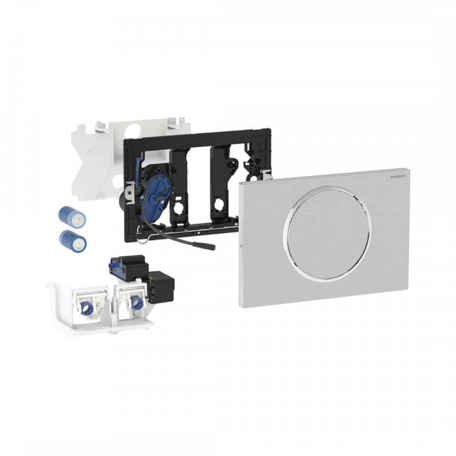 System spłukiwania WC Geberit, elektroniczny, zasilanie bateryjne, do spłuczki podtynkowej Sigma 12 cm, z przyciskiem uruchamiającym Sigma10, okrągły, do poręczy ściennej, sterowanie radiowePrzeznaczenie