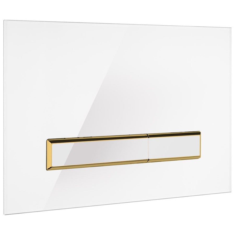 Opis produktu Oltens Torne przycisk spłukujący szklany do WC szklany biały/złoty mat/biały 57202000