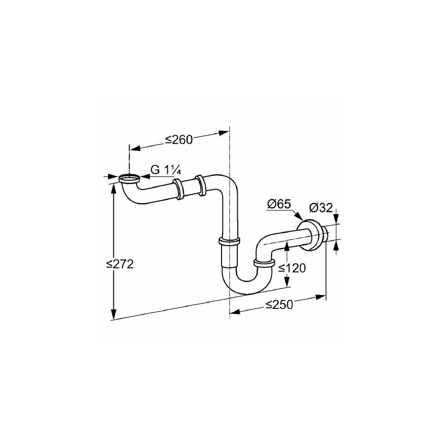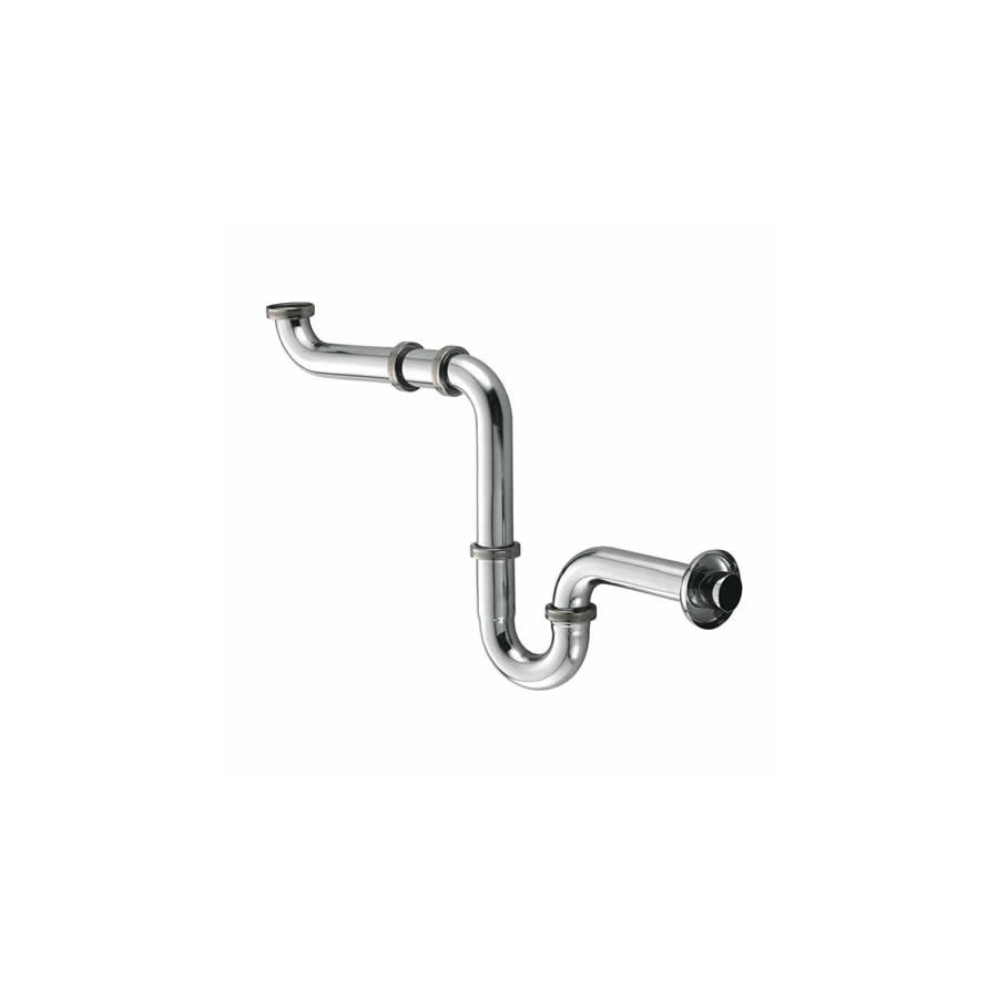 Syfon do montażu w miejscach niedostępnych G 1 1/4 x 32 mm, z rozetą i kolanem odpływu 32 mm.