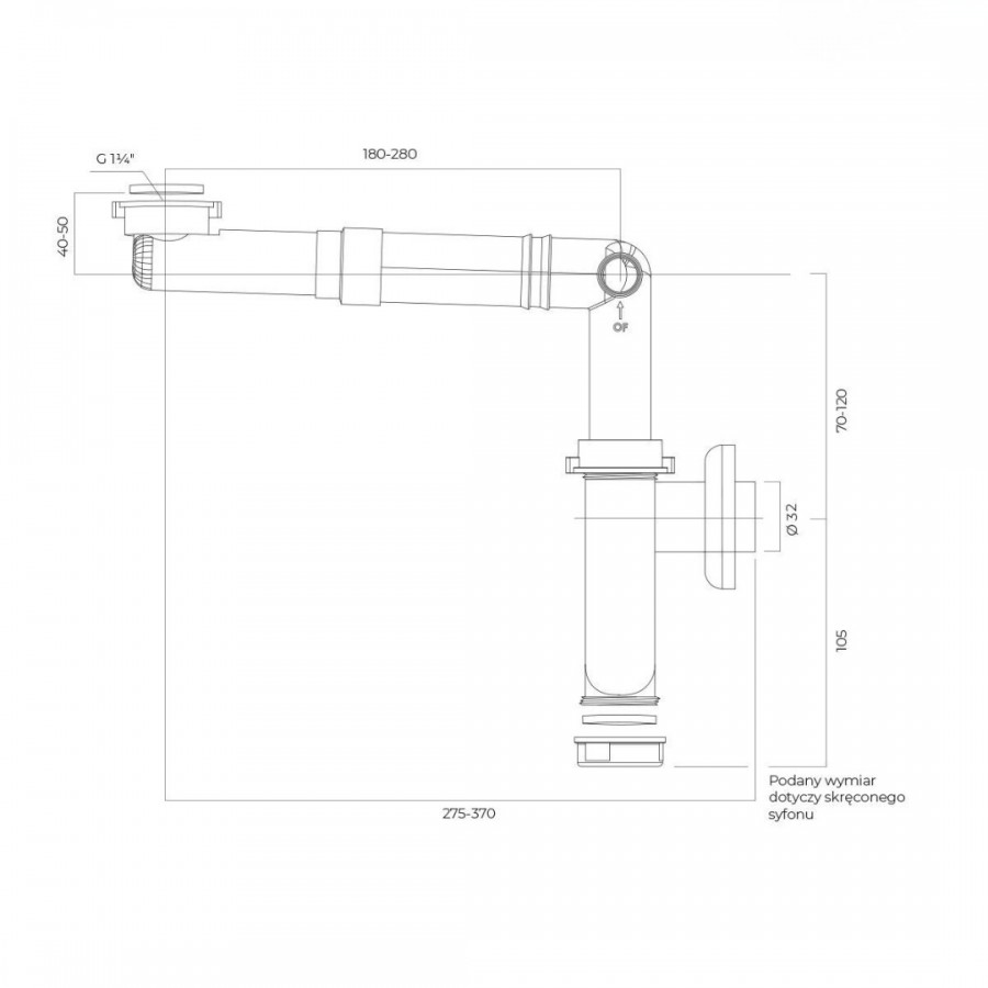 - teleskopowa budowa syfonu pozwala na regulację i dopasowanie zasięgu poszczególnych elementów syfonu