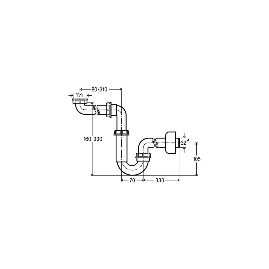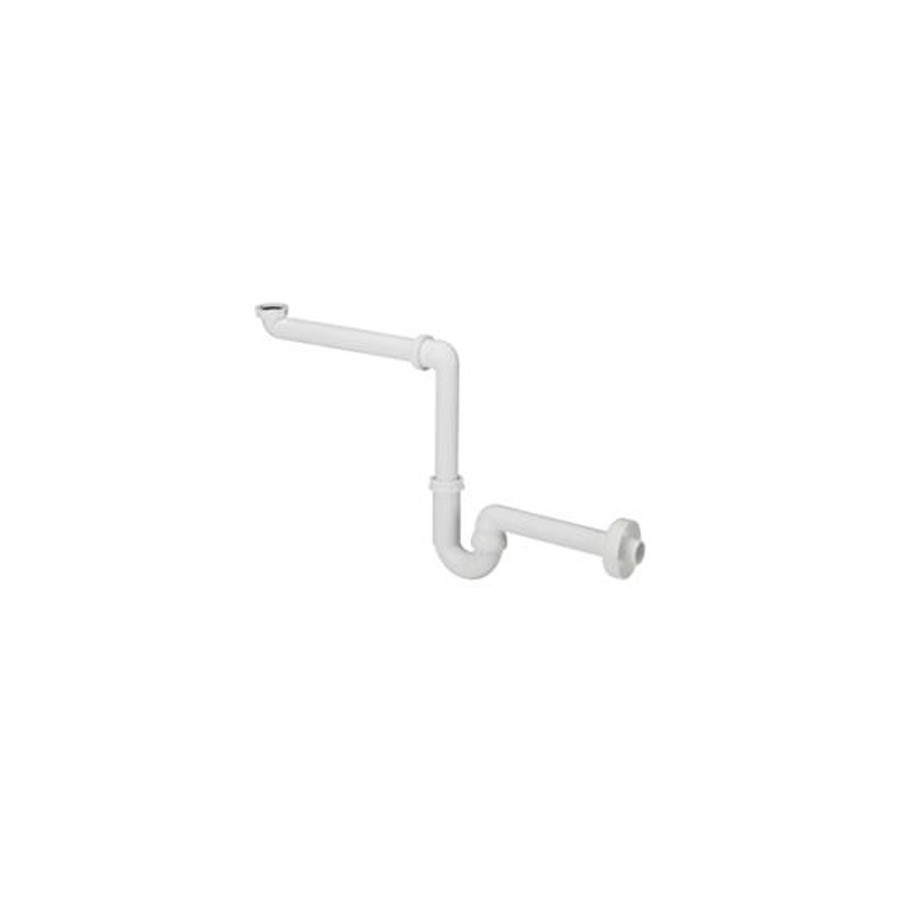 Syfon rurowy wykonany z tworzywa sztucznego, o średnicy nominalnej 3,2 cm, z możliwością pozyskania dodatkowej przestrzeni.