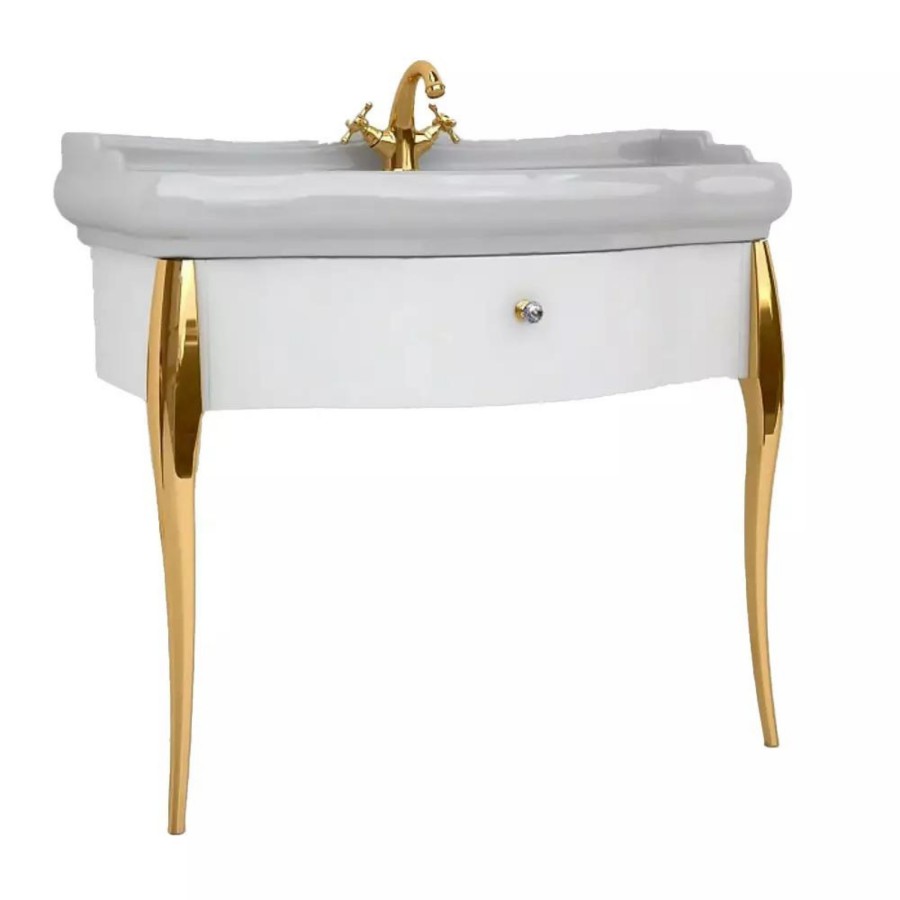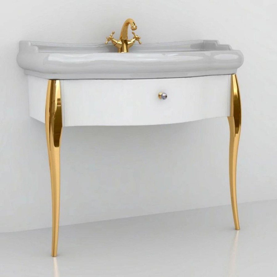 Opis produktu Kerasan Retro konsola pod umywalkę 100 cm z nóżkami biała/złota 7363K8