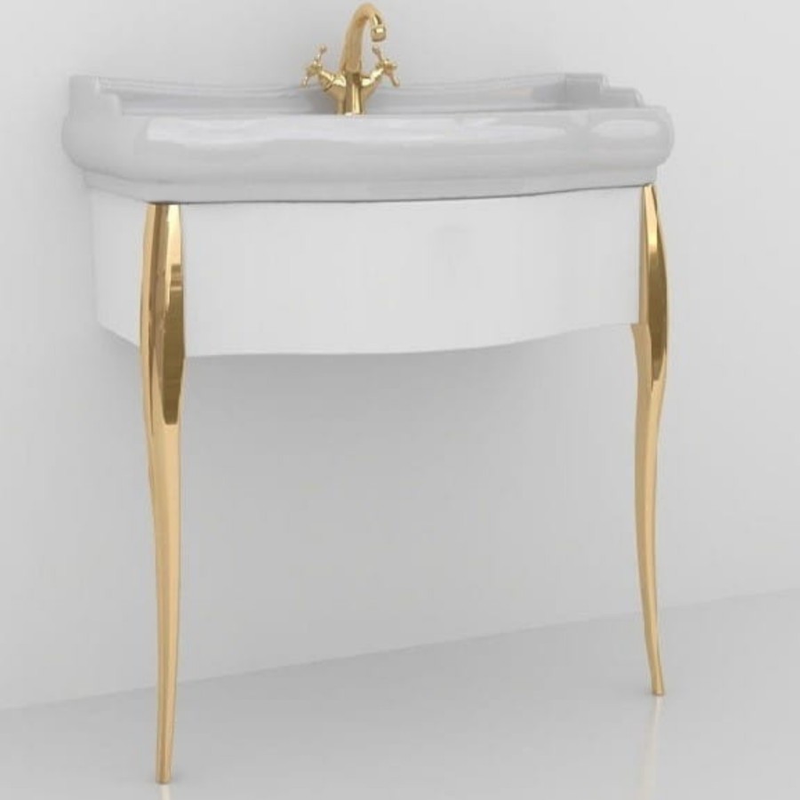 Opis produktu Kerasan Retro konsola pod umywalkę 73 cm z nóżkami biała/złota 7362K6