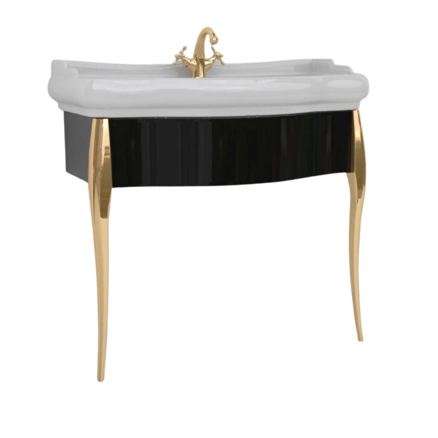 Opis produktu Kerasan Retro konsola pod umywalkę 73 cm z nóżkami czarna/złota 7362K3