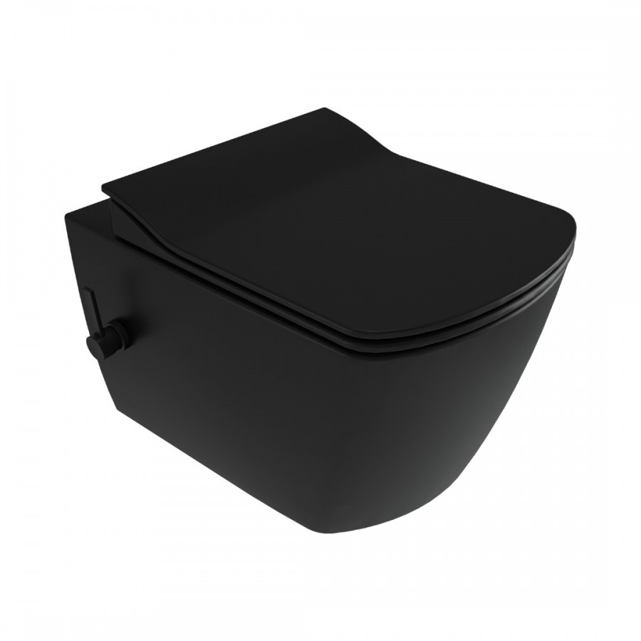 Opis produktu Deante Blur miska WC bez kołnirza z deską wolnoopadającą wisząca z funkcją bidetu czarny mat CDZ_NWPW