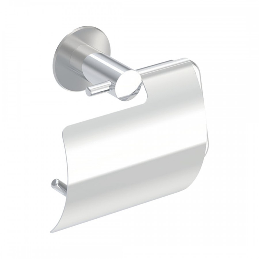 Uchwyt na papier toaletowy z pokrywą, wykonany ze stali nierdzewnej. W komplecie z zestawem montażowym do ściany twardej (cegła pełna, beton).