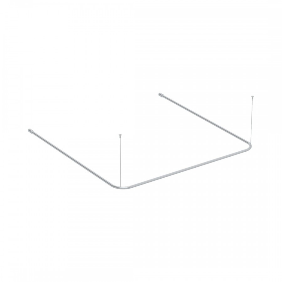Wieszak zasłony prysznicowej 150x150x150 cm, ze stali nierdzewnej, gładka wypolerowana powierzchnia o średnicy Ø22 mm. Montowany do ściany z dodatkowym mocowaniami stropowymi 500x4 mm. W komplecie znajdują się uchwyty do zasłony prysznicowej z tworzywa sztucznego, w kolorze białym (36 sztuk) oraz zestaw montażowy do ściany twardej (cegła pełna, beton). Konstrukcja pozwala na dowolne skrócenie wieszaka we własnym zakresie.