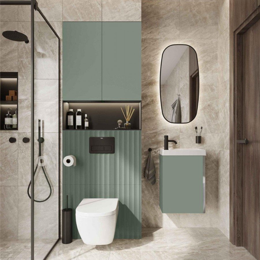 Opis produktu Elita Meble Spring zestaw łazienkowy 45 cm umywalka z szafką zielony mat RE020450131470