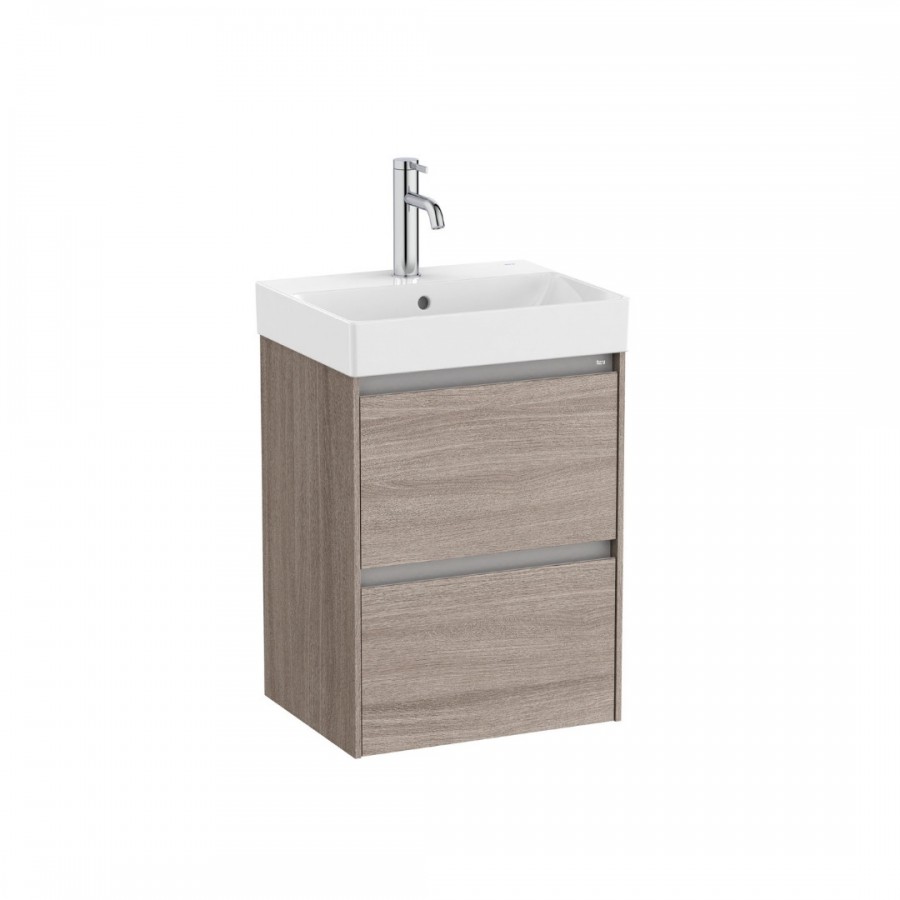 Opis produktu Roca Ona Unik Compacto zestaw łazienkowy 45 cm z szufladami ciemny wiąz A851681511