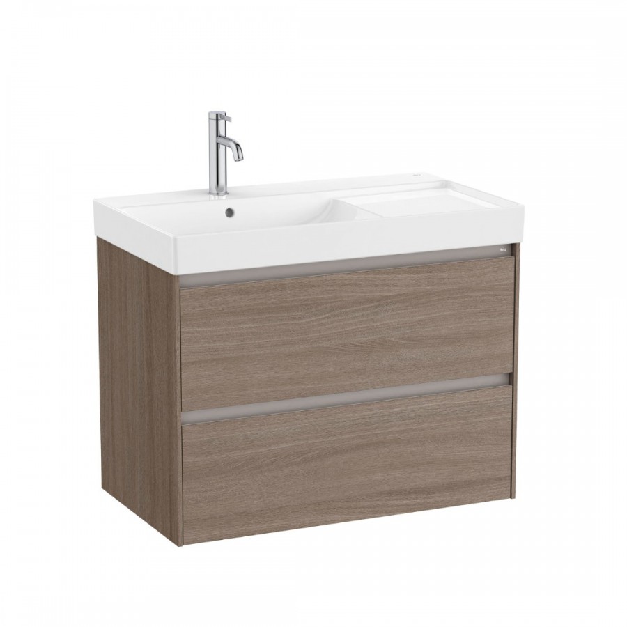 Opis produktu Roca Ona Unik zestaw łazienkowy 80 cm z szufladami lewy ciemny wiąz A851692511