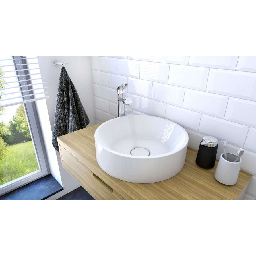 Nablatowa umywalka z ceramiki, średnica 45 cm. W komplecie z korkiem klik-klak.Deante Miran umywalka nablatowa śr 45 cm CDR 6U4S
