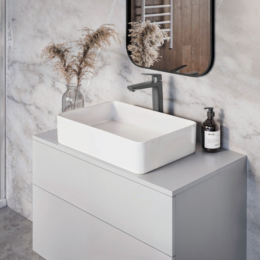 Opis produktu Deante Square umywalka 50,5x35,5 cm nablatowa prostokątna biała CGS_6U5S