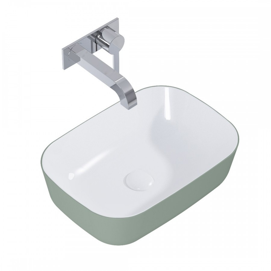 Opis produktu Elita Meble Reni umywalka nablatowa 45,5x32,5 cm prostokątna biały połysk/zielony mat RE040460890890