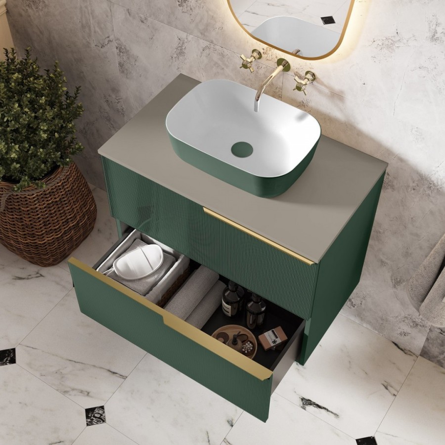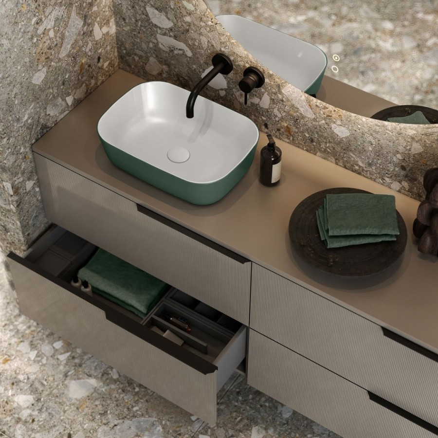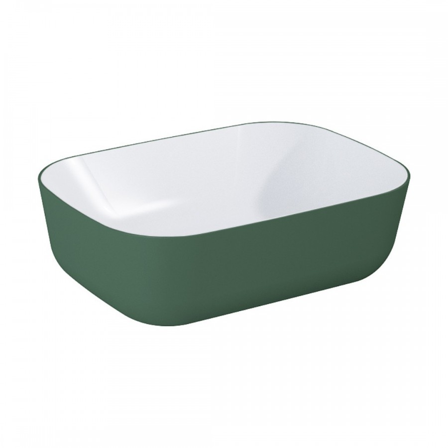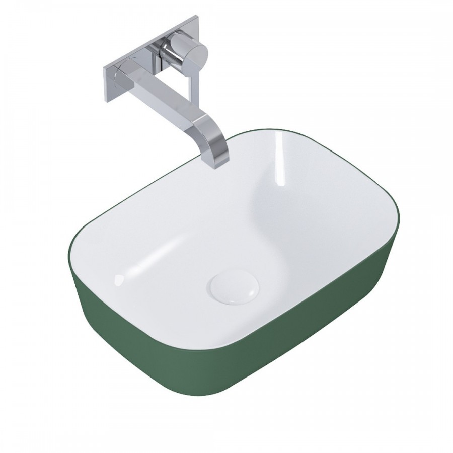 Opis produktu Elita Meble Reni umywalka nablatowa 45,5x32,5 cm prostokątna biały połysk/zielony mat RE040460896150