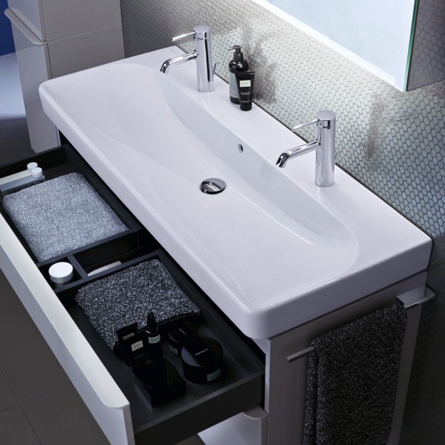 Opis produktu Geberit Smyle Square umywalka 120x48 cm prostokątna biała z powłoką KeraTeck 500.253.01.8