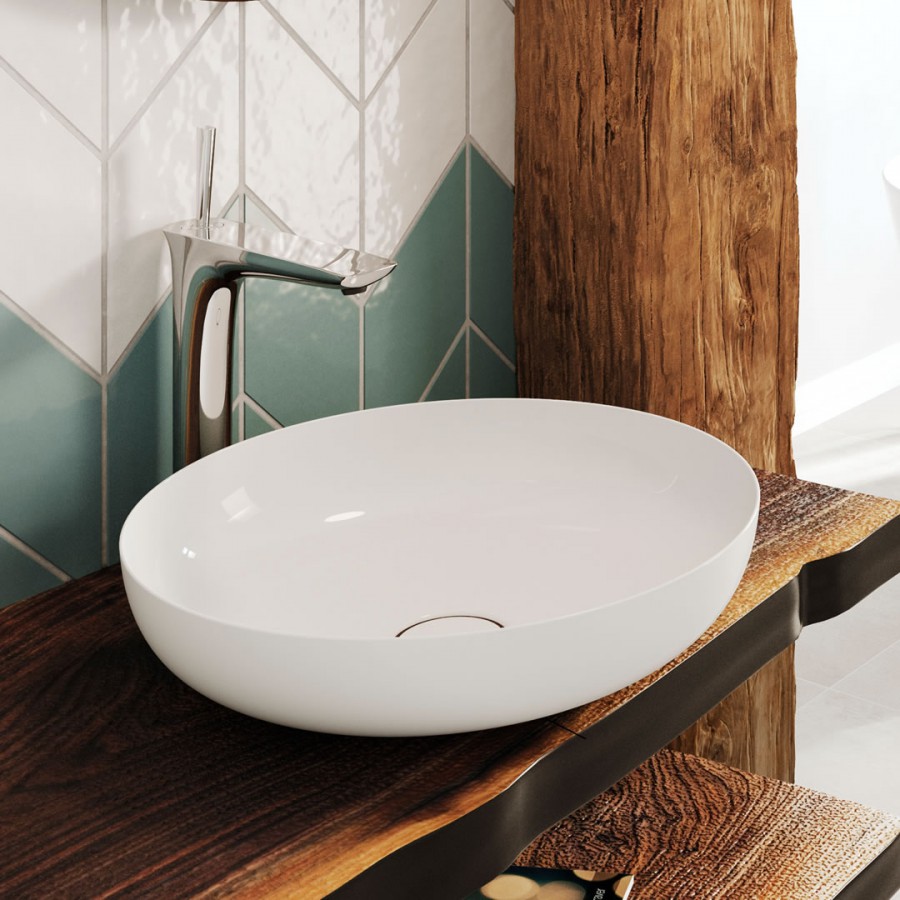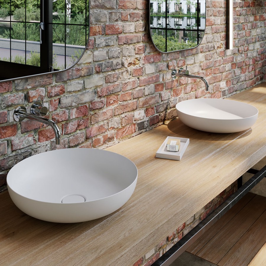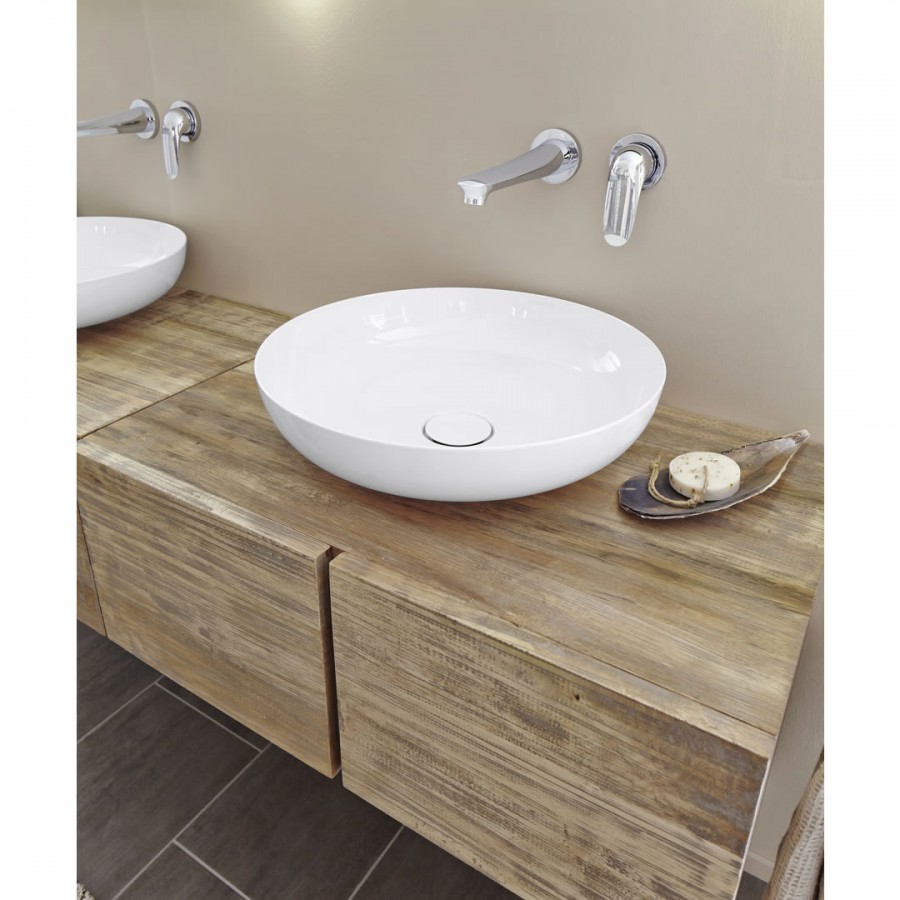 Opis produktu Kaldewei Miena umywalka nablatowa okrągła 45 cm stalowa biały błyszczący
