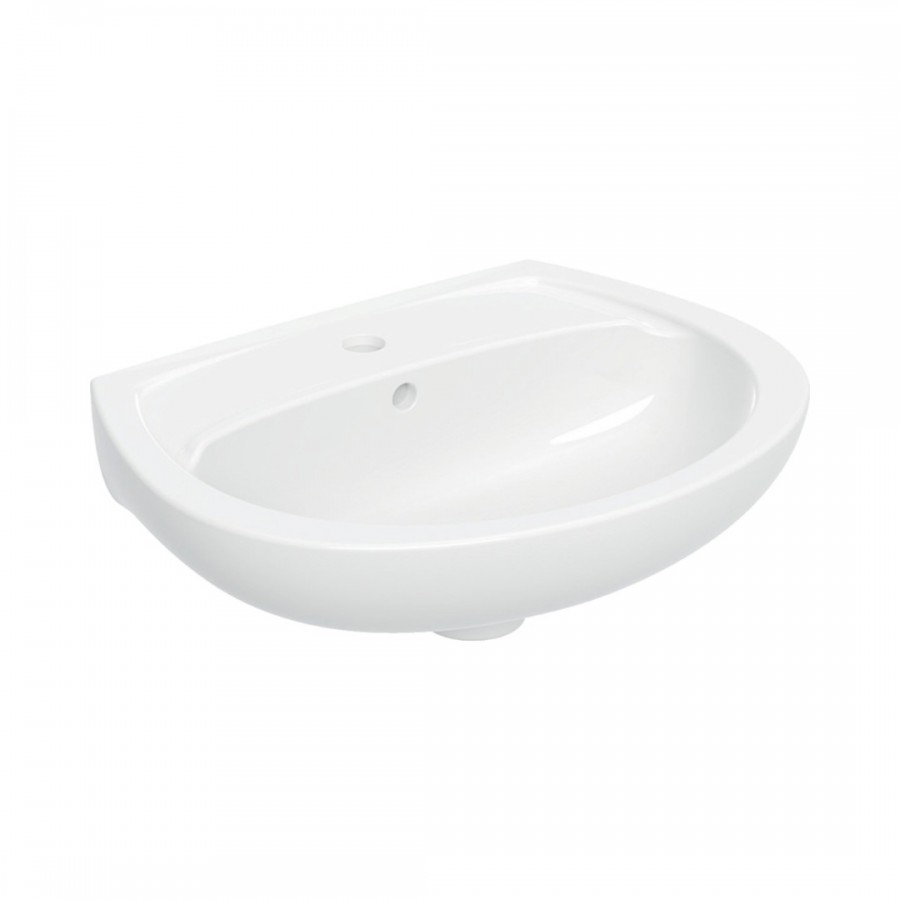 Umywalka wisząca 55x42 cm, z otworem na baterię i przelewem. Mocowana na śrubach. Do kompletowania z postumentem lub półpostumentem.