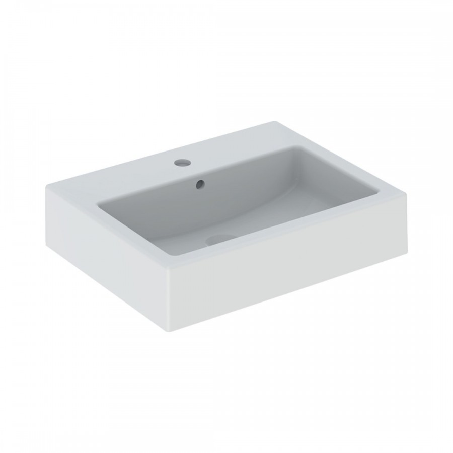 Umywalka 60x46 cm, z misą prostokątną, z otworem na baterię i przelewem. Mocowanie na śrubach. Do kompletowania z zaworem spustowym, szafką podumywalkową.
