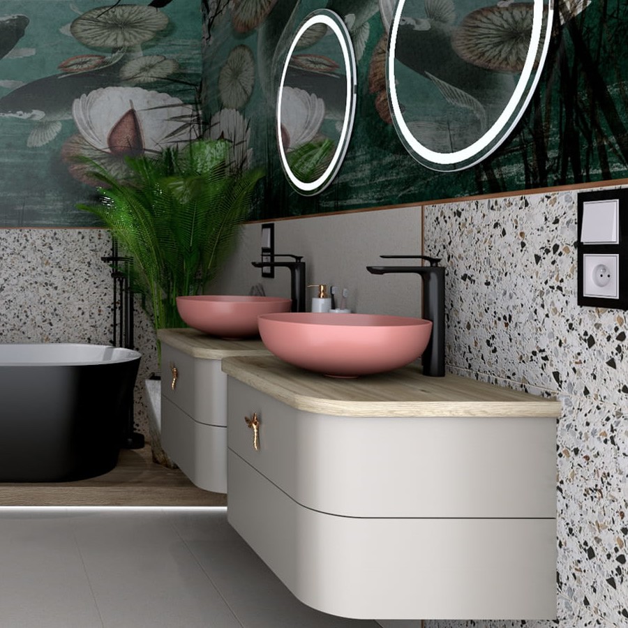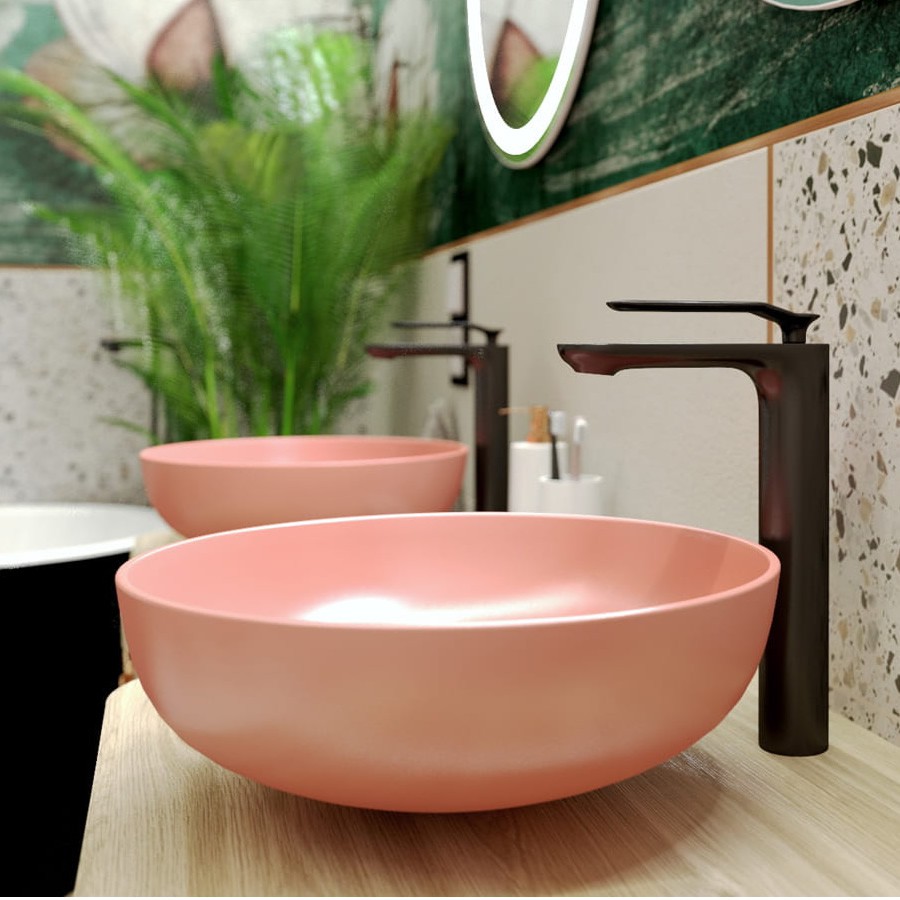 Opis produktu Massi Molis umywalka nablatowa okrągła 38 cm różowy półmat MSU-0013-MS
