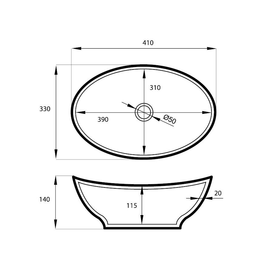 Opis produktu Massi Oval umywalka nablatowa 41x33 cm biała MSU-5060B