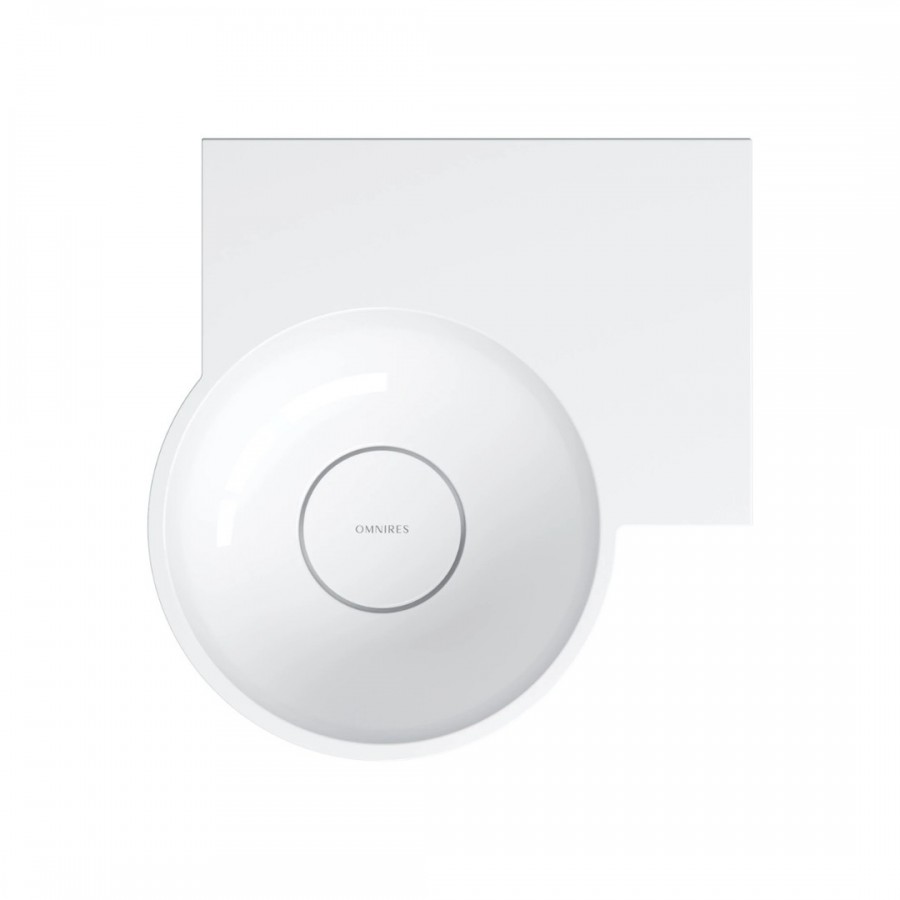 Umywalka z kolekcji OMNIRES OVO charakteryzuje się minimalistyczną, wyrazistą formą o doskonałych proporcjach. Powstały z zabawy geometrią kształt tworzą okrągła misa połączona z prostokątną, funkcjonalną półką - idealnym miejscem do montażu baterii, a także do odstawienia kosmetyków, czy innych niezbędnych akcesoriów. Harmonijnie wyprofilowane ścianki zostały wykończone płaskim, podkreślającym formę rantem, a idealnie dopasowana maskownica odpływu gwarantuje najwyższą estetykę. Od spodu umywalki zaprojektowano dyskretne, fabrycznie podcienione punkty, które wskazują miejsca na wykonanie otworów pod baterię lub dozownik, umożliwiając elastyczne dopasowanie armatury do indywidualnych potrzeb.