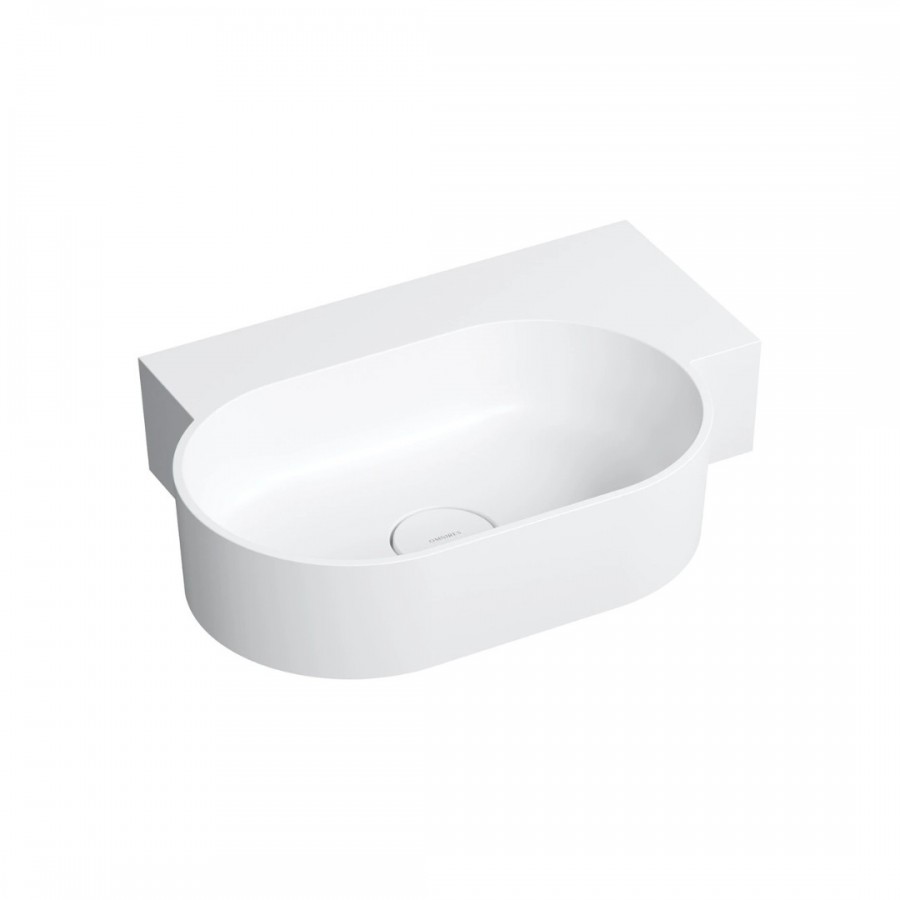 Opis produktu Omnires Ovo M+ umywalka ścienna-nablatowa 55x38 cm prawa biały mat OVO555UWPBM