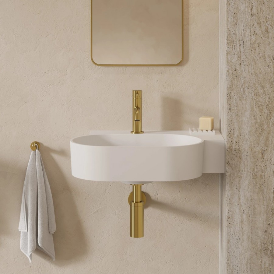 Starannie dopracowana forma umywalki, z perfekcyjnie wykończonymi bokami, zapewnia swobodę montażu i doskonały wygląd w każdej wersji. Zawieszona na ścianie lub w narożniku zachwyca nowoczesną lekkością, a ustawiona na blacie podkreśla wyrazistość i unikalny styl wnętrza. Jej kompaktowe gabaryty czynią ją doskonałym wyborem również do pomieszczeń o ograniczonej powierzchni.