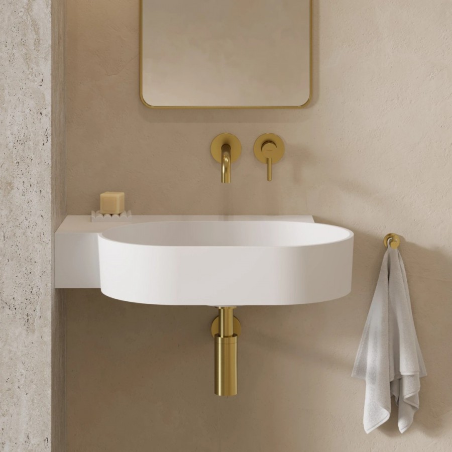 Starannie dopracowana forma umywalki, z perfekcyjnie wykończonymi bokami, zapewnia swobodę montażu i doskonały wygląd w każdej wersji. Zawieszona na ścianie lub w narożniku zachwyca nowoczesną lekkością, a ustawiona na blacie podkreśla wyrazistość i unikalny styl wnętrza. Jej kompaktowe gabaryty czynią ją doskonałym wyborem również do pomieszczeń o ograniczonej powierzchni.