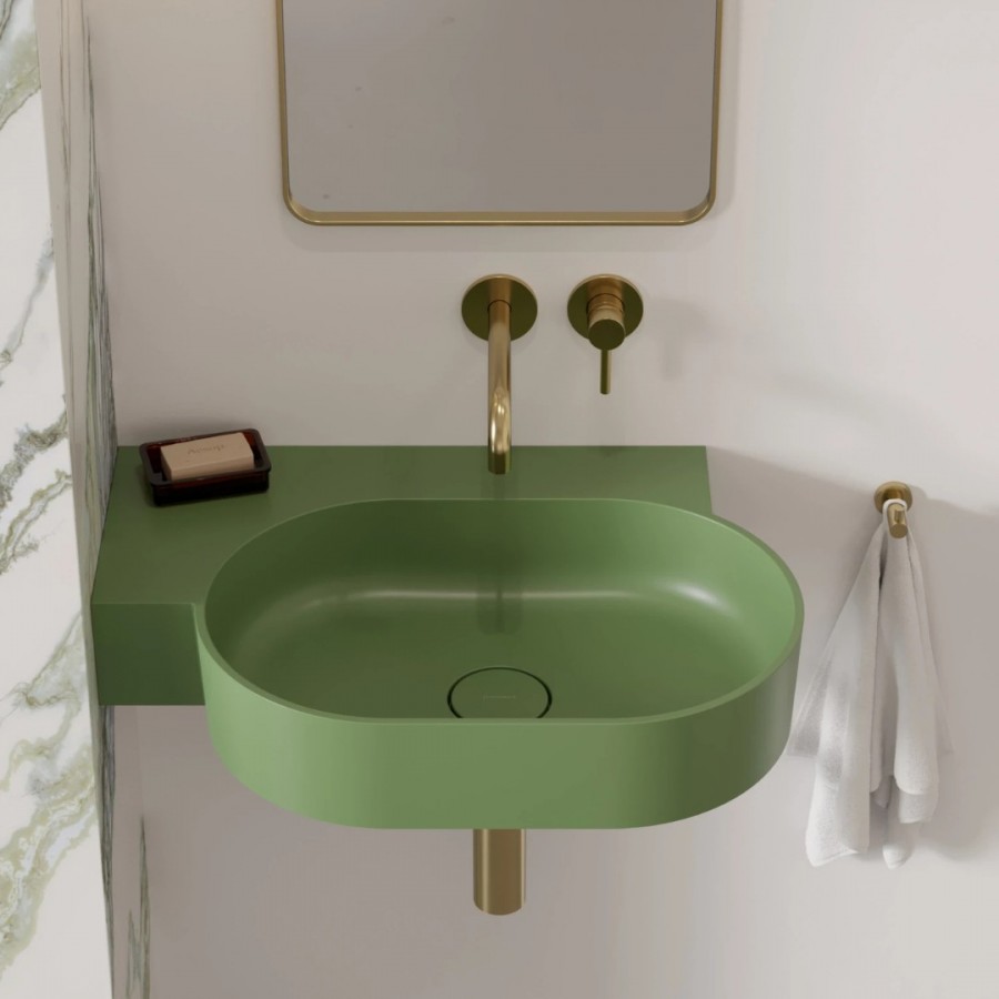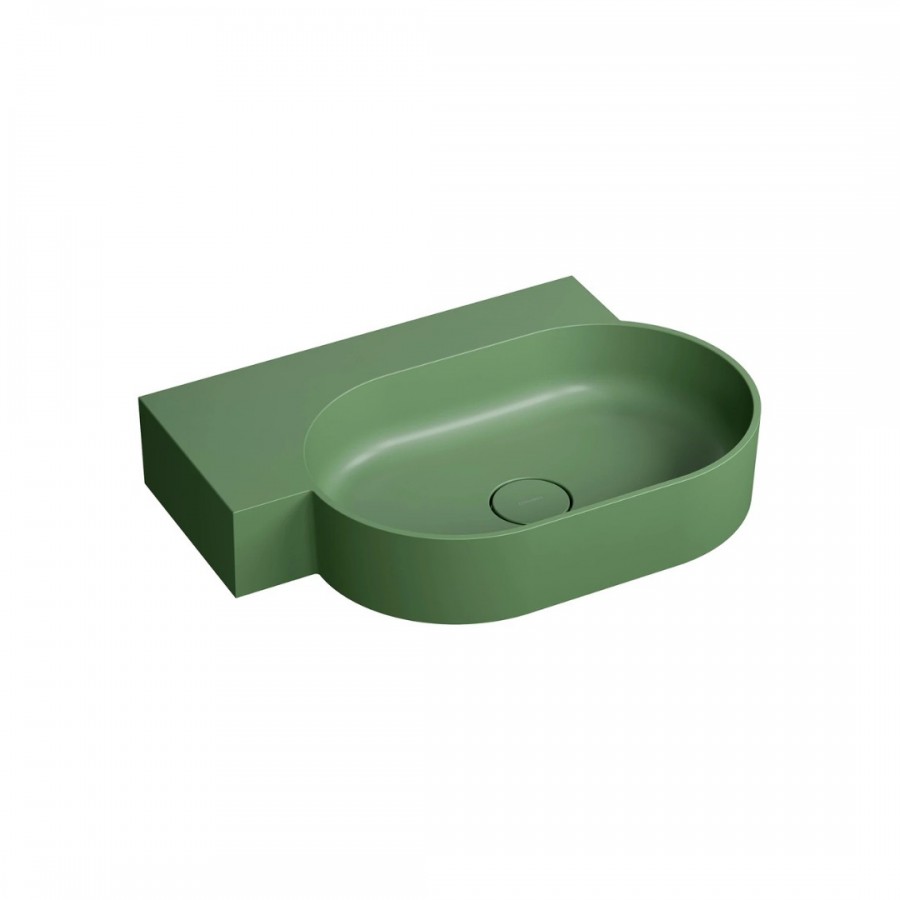 Opis produktu Omnires Ovo M+ umywalka ścienna-nablatowa 64x44 cm lewa zielony mat OVO645UWLOL