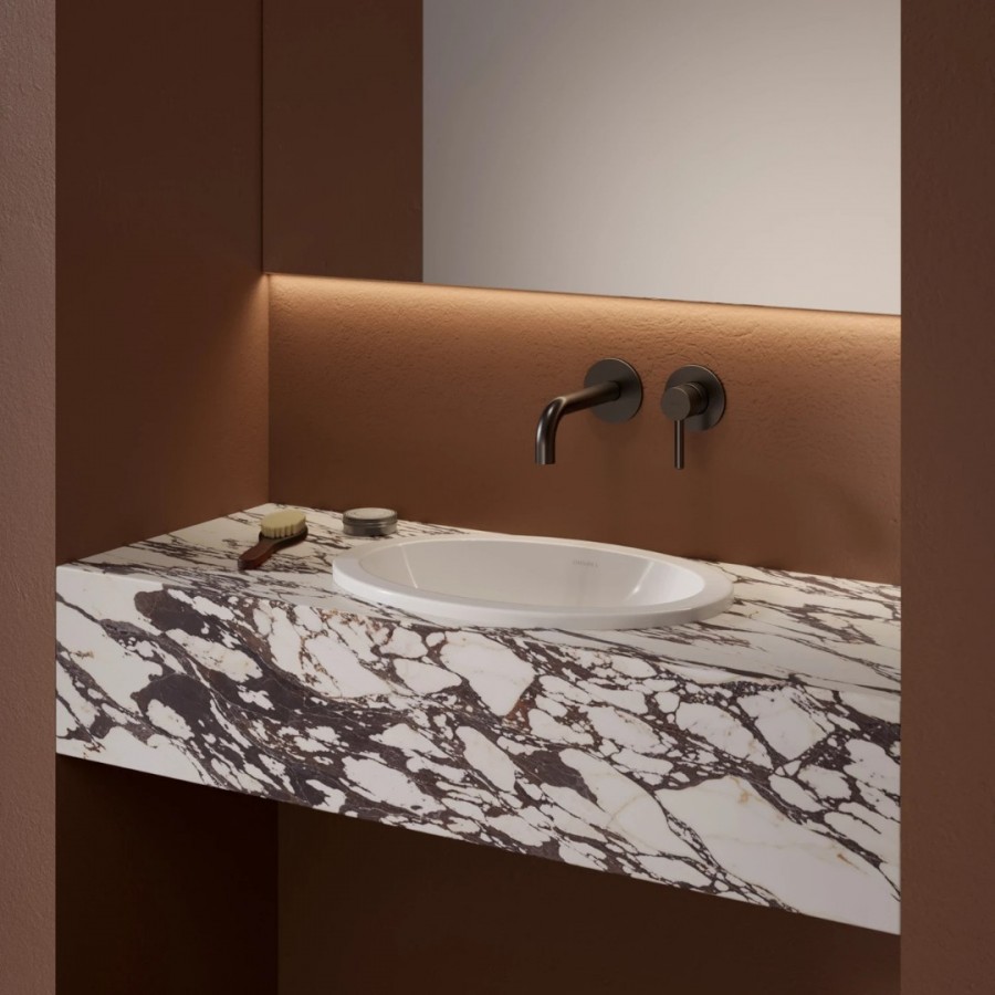 Umywalka została wykonana z materiału kompozytowego M+, którego głównym składnikiem jest skała dolomitowa. Innowacyjna technologia produkcji gwarantuje perfekcyjne wykonanie każdego detalu, jednocześnie zapewniając wyjątkową trwałość i odporność.