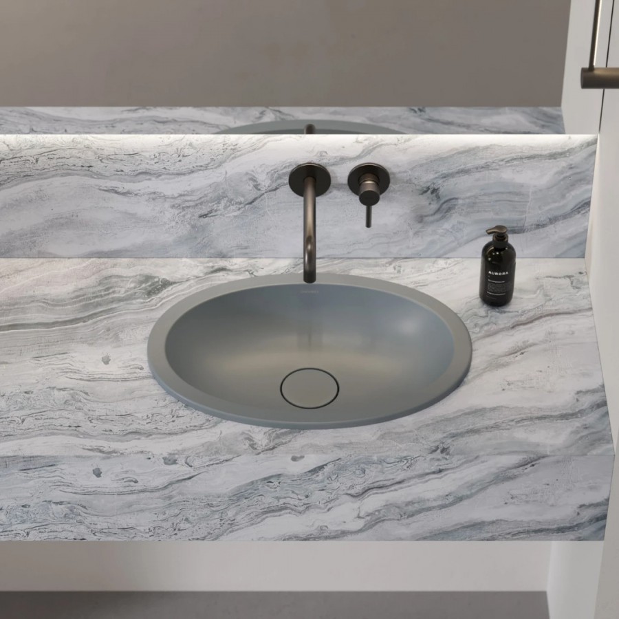 Umywalka została wykonana z materiału kompozytowego M+, którego głównym składnikiem jest skała dolomitowa. Innowacyjna technologia produkcji gwarantuje perfekcyjne wykonanie każdego detalu, jednocześnie zapewniając wyjątkową trwałość i odporność.