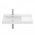 Umywalka 80x46x16 cm, z otworem na baterię i przelewem. Położenie niecki: po lewej stronie. Położenie półki: po prawej stronie. Montaż ścienny. W komplecie zestaw montażowy. Kolor: biały.