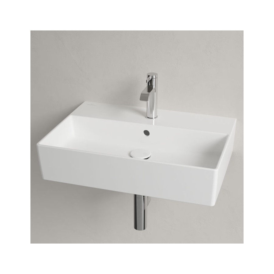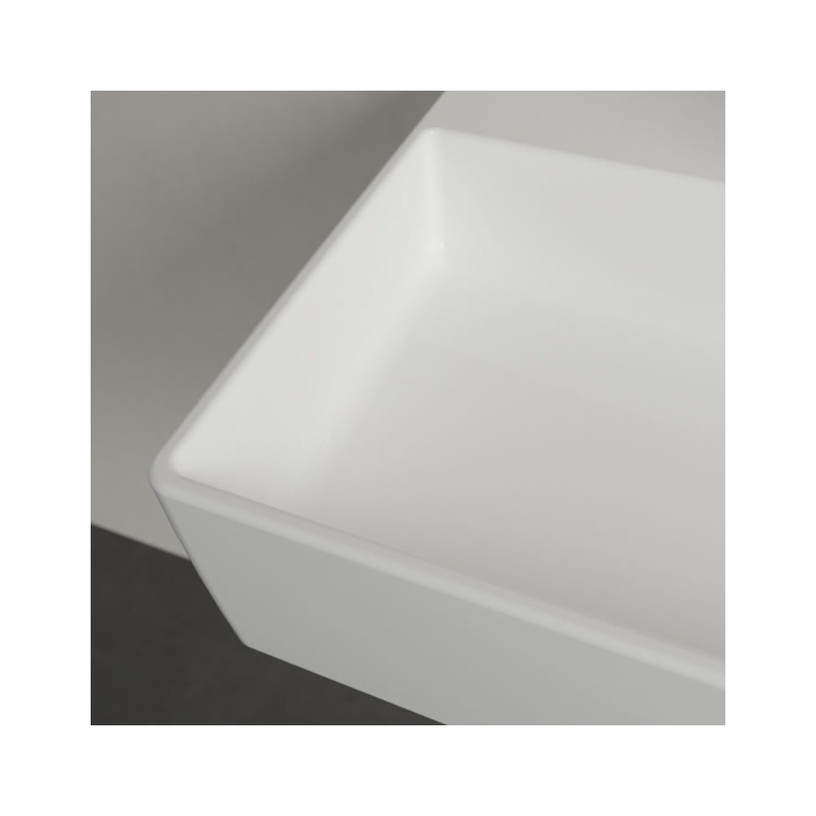 Umywalka wisząca lub do postawienia na blacie 60x42 cm, z przelewem i otworem na baterię. Wykonana z materiału TitanCeram - mieszanki naturalnych surowców. W komplecie szablon do wycięcia otworu w blacie.Villeroy&Boch Memento 2.0 umywalka 60x42 cm 4A226G01