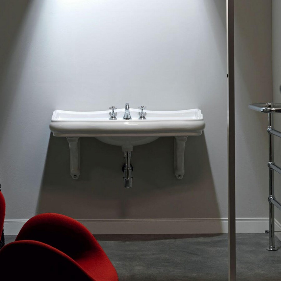 Opis produktu Kerasan Retro umywalka ścienna 100x54,5 cm 3 otworowa biała 105001/3OT