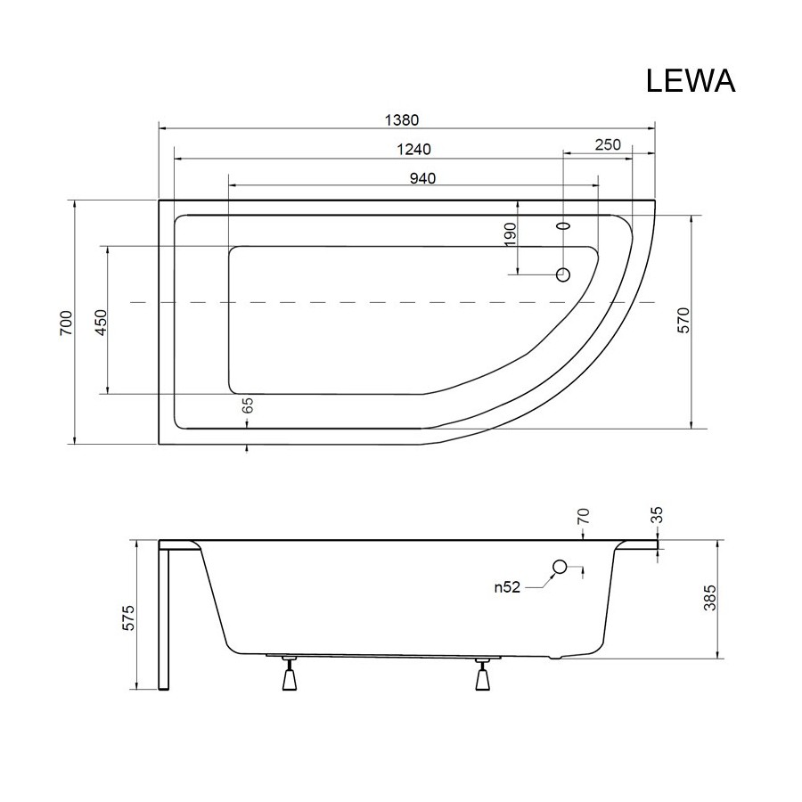 Dane techniczne:- rodzaj produktu: wanna asymetryczna