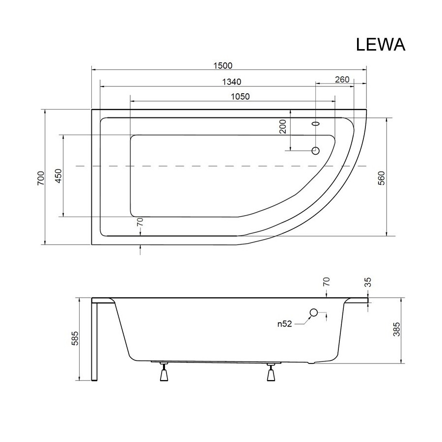 Dane techniczne:- rodzaj produktu: wanna asymetryczna