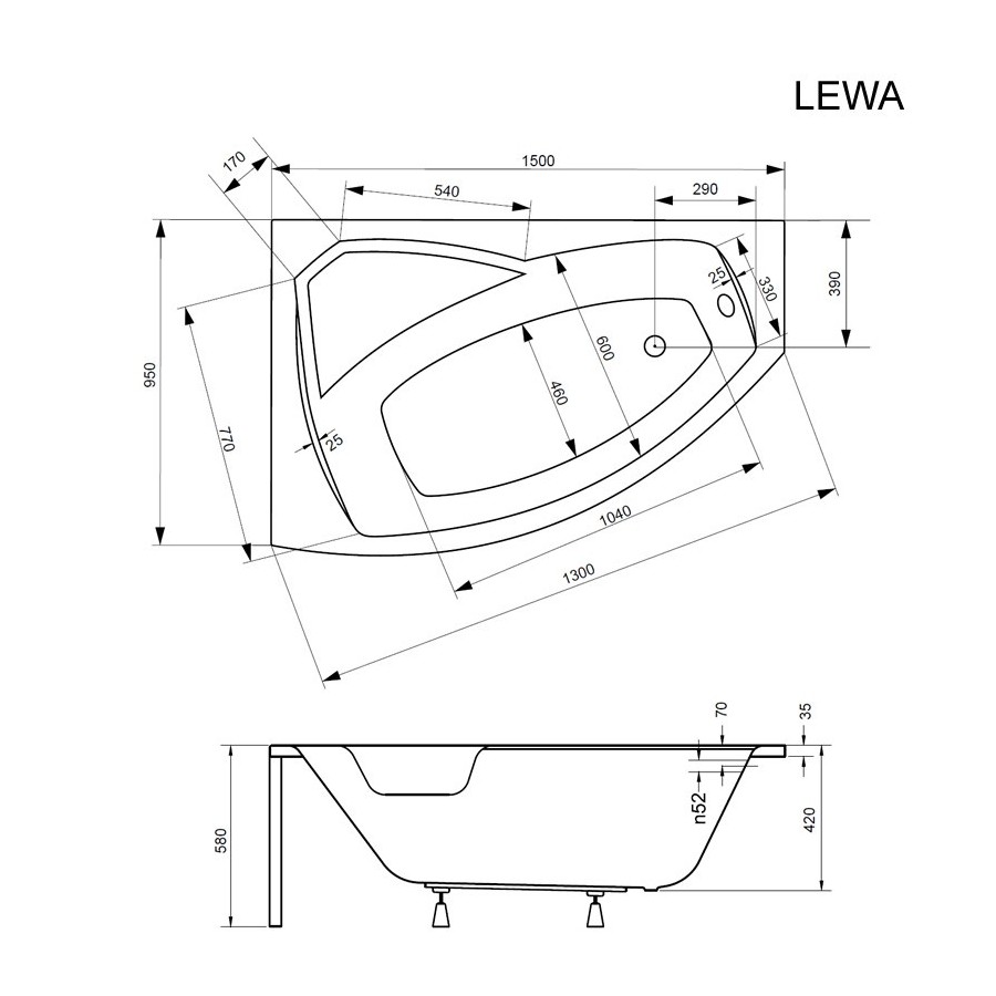 Dane techniczne:- rodzaj produktu: wanna asymetryczna