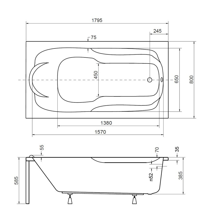 Dane techniczne- rodzaj produktu: wanna prostokątna