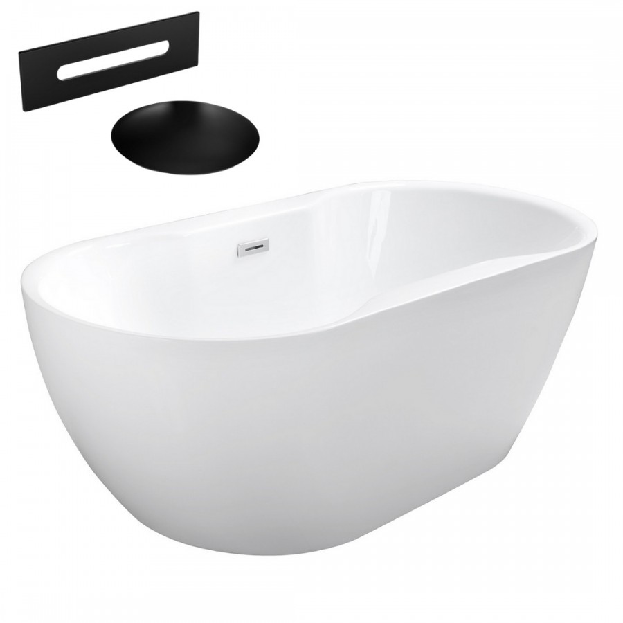 Opis produktu Besco Navia wanna wolnostojąca 140x75 cm z przelewem czarnym WAS-140-NCZ