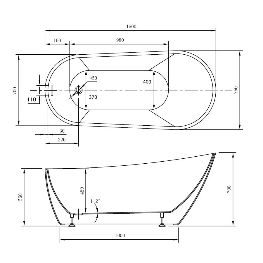 Dane techniczne:- rodzaj produktu: wanna wolnostojąca z przelewem