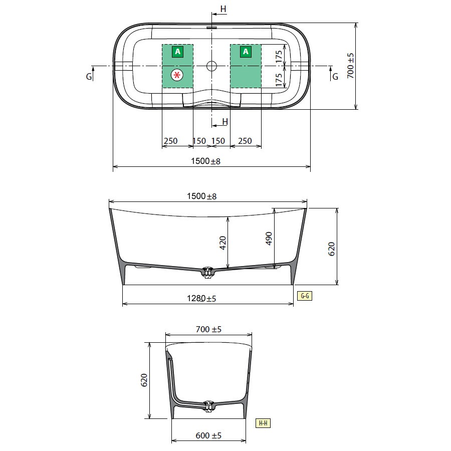 Opis produktu Novellini Ship wanna wolnostojąca 150x70 cm biały mat