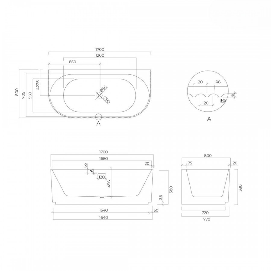 Opis produktu Oltens Hamnes wanna wolnostojąca 170x80 cm przyścienna biała 12026000