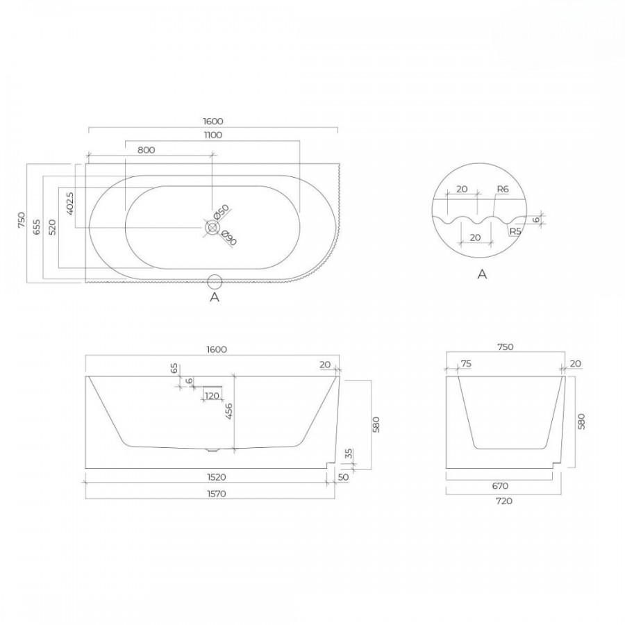 Opis produktu Oltens Hamnes wanna wolnostojąca narożna 160x75 cm lewa biała 11010000